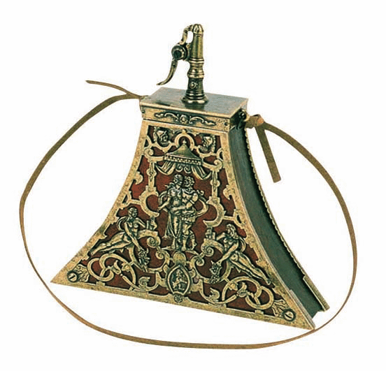 Below is an illustration by Jacob De Gheyn II of a powder flask from the Historic Jamestown website. Hmmm.... I wonder how hard it would be to make one of those things?